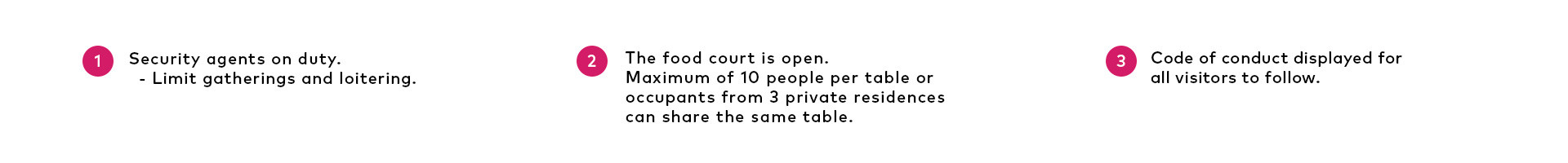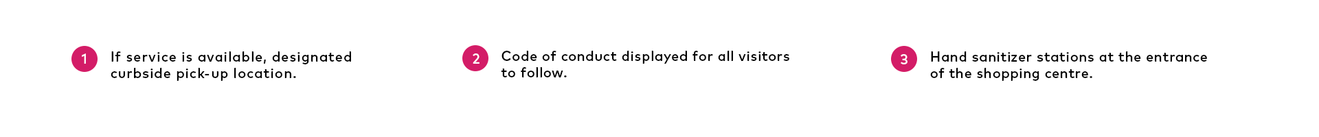 We thank you in advance for following all safety measures. Here is a snapshot of the various signs that you may see in our shopping centre.