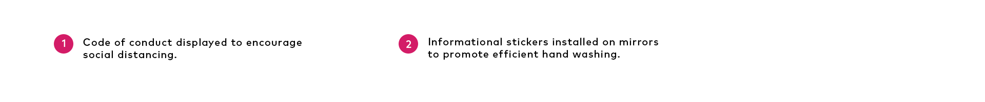 We’ve adapted our common areas to provide safe spaces throughout the centre. To reduce the risk of spreading the virus and to limit social gatherings, clear signage is installed to guide your circulation on the premises.