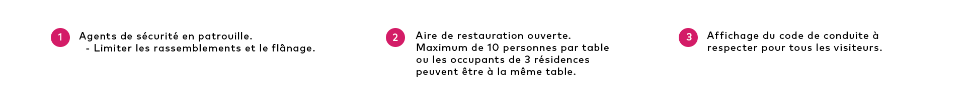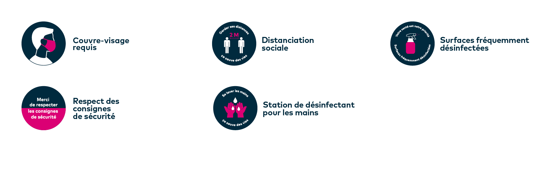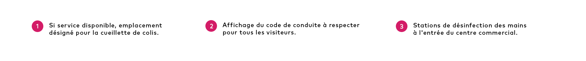 On vous remercie d’avance de respecter les consignes de sécurité en vigueur. On vous partage d’ailleurs un aperçu de la signalisation affichée dans notre centre commercial.