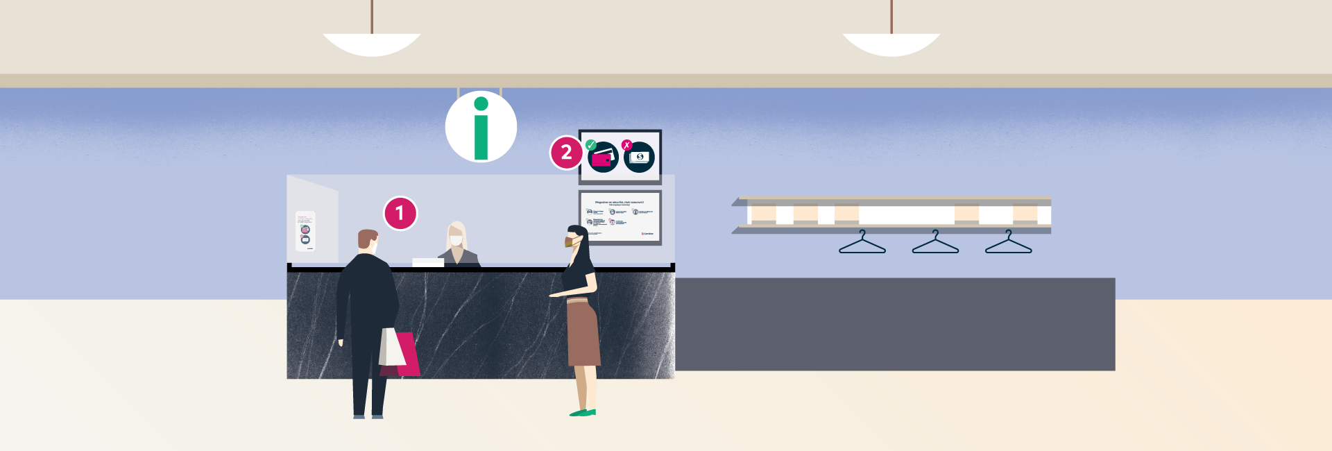 Votre santé et celle de nos employés nous tiennent à cœur. On a instauré un code de conduite pour les visiteurs afin de faciliter le rappel des mesures à respecter lors de vos séances de magasinage.